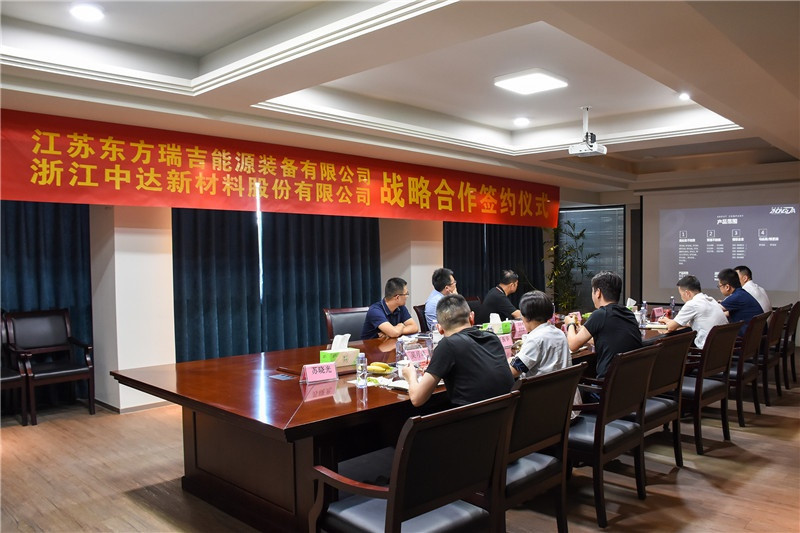In order to better serve customers, further deepen cooperation, and implement the theme of creating high-quality products, rapid delivery, and creating value for strategic customers, on July 23, Zhongda Advanced Material and Jiangsu Oriental Regis Energy Equipment Co., Ltd. signed a two-party strategy The cooperation agreement aims to consolidate the cooperation between the two parties and enhance the level of cooperation between the two parties.