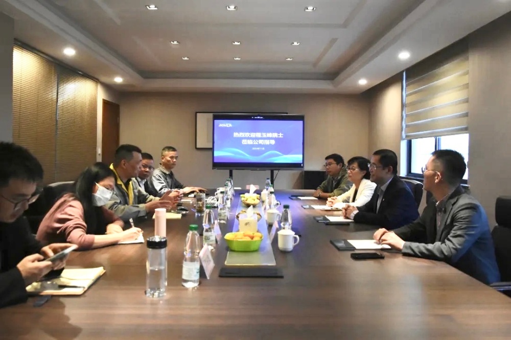 On November 4, Cheng Yufeng, academician of the Canadian Academy of Sciences and tenured professor of the University of Calgary, Ding Liping, secretary of the party group and chairman of the Haiyan County Association for Science and Technology, Gu Chenyi, deputy director of the Organization Department of the Haiyan County Party Committee and full-time deputy director of the Talent Office of the Haiyan County Party Committee, Yu Jianyun, deputy secretary of the Youth League Committee of the Haiyan County Comprehensive Administrative Law Enforcement Bureau, Xu Qijie, deputy secretary of the Party Committee and chairman of the trade union of Baibu Economic Development Zone (Baibu Town), Wu Chenkai, deputy director of the Baibu Town Economic Service Center, and other people visited the new material, and Wu Liyang, the general manager, accompanied the reception.
