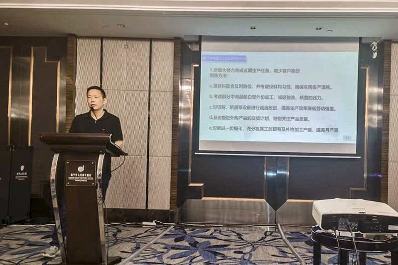 中達新材總經理吳利陽通報了公司上半年相關經營數據:銷售額完成年初既定目標的53.55%,與去年同期相比增長38.24%;利潤完成年初既定目標的54.98%,與去年同期相比增加28.1%;生產產量跟去年同期基本持平。吳總表示,在后疫情時代這樣的成績來之不易,這份成績凝結了公司上下全體員工的心血和汗水,如日方升,更進一竿,2022年對于中達新材來說是至關重要的一年,中達新材必須一鼓作氣,乘勝追擊,要通過持續推進IPO上市工作,謀劃市場策略及開發核心產品,引入全面預算管理,完成信息化項目的順利交付和運行,高標準執行質量管理等,實現突破,更進一竿。